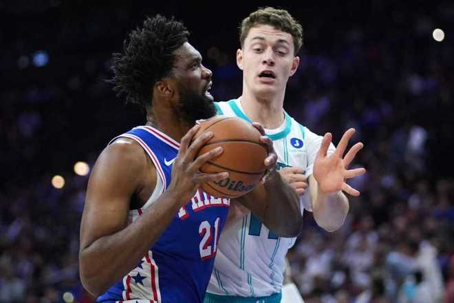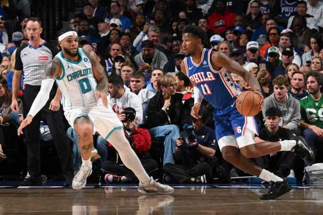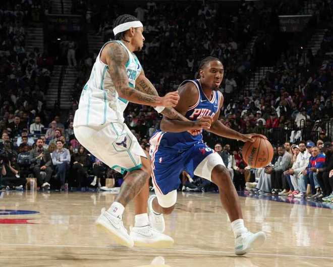 末节比赛,黄蜂继续压制76人在第四节中段维持9分优势,76人持续反扑追分。还剩4分19秒76人109-116落后,76人一波8-0攻势反超1分,三球中投回敬。三球继续两罚一中,马克西上篮追平比分,双方随后各投篮一次三分不中。不过格莱姆斯还剩13.9秒命中反超三分,曼恩扳平三分不中,德拉蒙德抢到篮板被犯规两罚一中,卡尔克布伦纳补篮追到差2分续命。马克西被犯规两罚全中,三球三分不中,最终76人125-121险胜黄蜂。